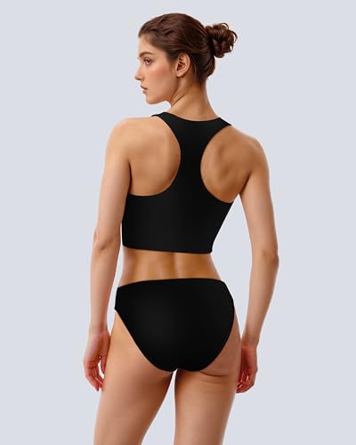 • Design: This swimsuits top with a removable padding bra, round neck design, paired with low-waist period swim bottoms, the racerback two-piece design is full of sporty style.