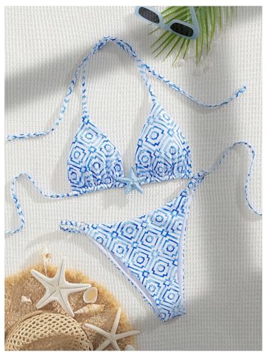 MakeMeChic Women's Bikini Sets Geo Print Ring Linked Halter Summer Bathing Suits 6