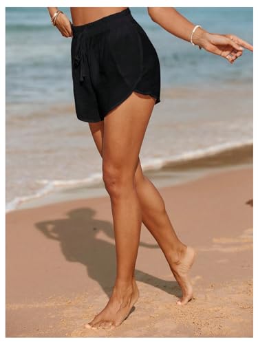 HOT ! Floerns Women's See Through Swimwear Drawstring Waist Beachwear Cover Up Shorts