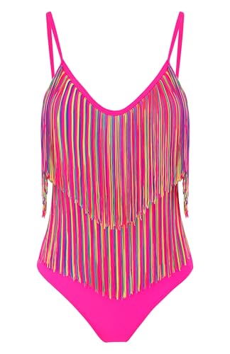 • Feature: Bright one-piece swimsuit features a V-neck strap design that is sexy yet elegant, with elastic and wear-resistant fabrics, adjustable straps and removable full-cup bra pads, you can get the most comfy wearing experience, and play in the water feel free. Sexy tassels swimwear is covered with fringes as a decoration, which plays a role in embellishing your figure. The bright colors and flowing tassels will fly with your movements, making you become a bright color in the crowd