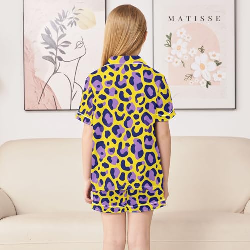 2 Piece Satin Pajamas Set Cute Leopard Silk Button Down Sleepwear Summer Nightwear 5