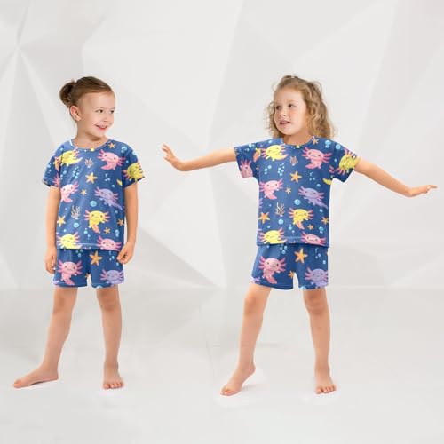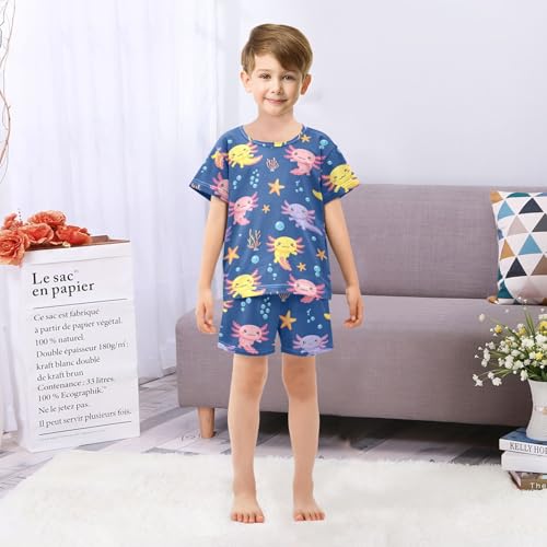 Pajama Short Sets Cute Axolotls Underwater Scene Soft Cotton Summer Sleepwear 2 Piece PJS Size 5-14T 6