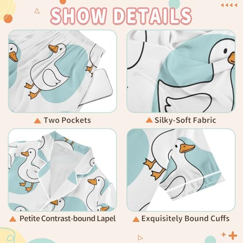 Satin Pajama Sets Short Sleeve Ducks on Blue Backgrounds Button Down Silky Nightwear 2 Piece PJS 5-14Y 5