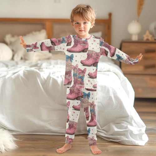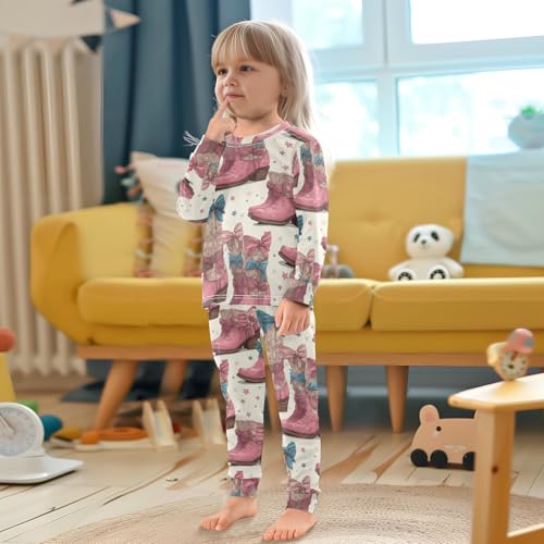 Pajama Sets Long Sleeve Cowgirl Pink Boots Soft Comfy Sleepwear 2 Piece PJS 3-8T 2
