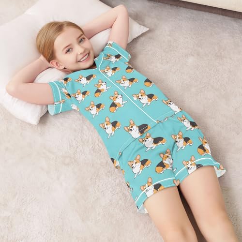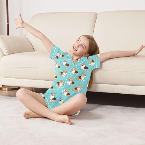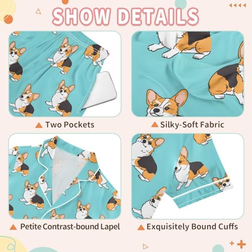 ALAZA Hipster Puppy Dog Blue Satin Pajamas Set Short Sleeve Button Down Sleepwear Summer Pjs 2 Piece 6