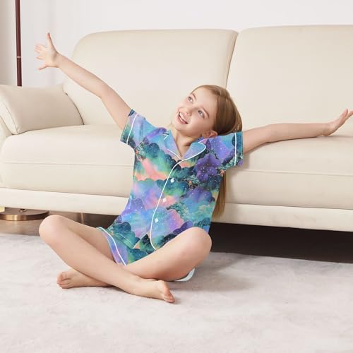 ALAZA Mountain Starry Satin Pajamas Set Short Sleeve Button Down Sleepwear Summer Pjs 2 Piece 6