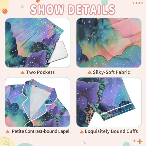 More information about ALAZA Mountain Starry Satin Pajamas Set Short Sleeve Button Down Sleepwear Summer Pjs 2 Piece
