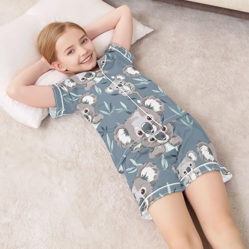 ALAZA Koala Leaf Gray Pajamas Satin Pajama Set Short Sleeve Button Down Sleepwear 6