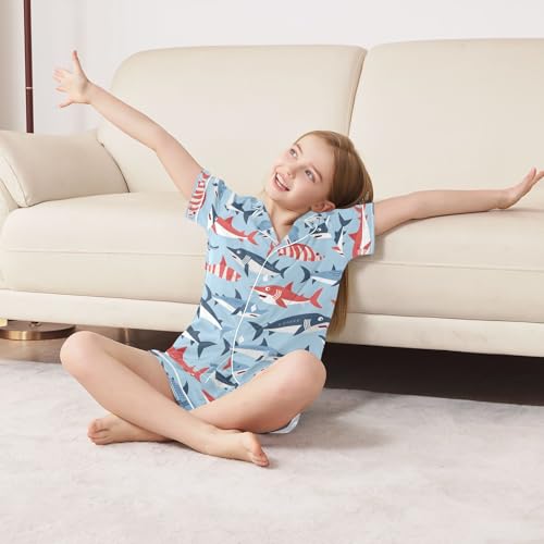 ALAZA Cute Fish on Blue Pajamas Satin Pajama Set Short Sleeve Button Down Sleepwear 7