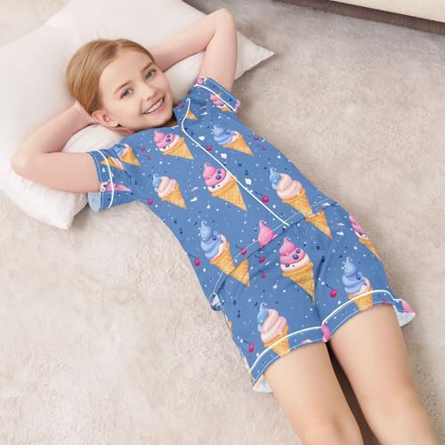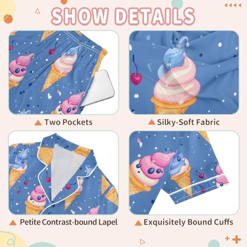 ALAZA Cherry Ice Cream Pajamas Satin Pajama Set Short Sleeve Button Down Sleepwear 7