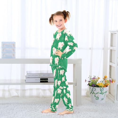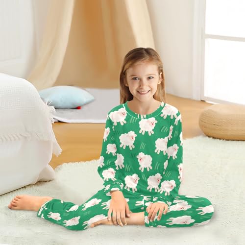 Little Sheep Green Soft Pajama Set for All Seasons,Breathable Pjs Long Sleeve Sleepwear,Comfy Loungewear 2 Piece Underwear Set 8T 7