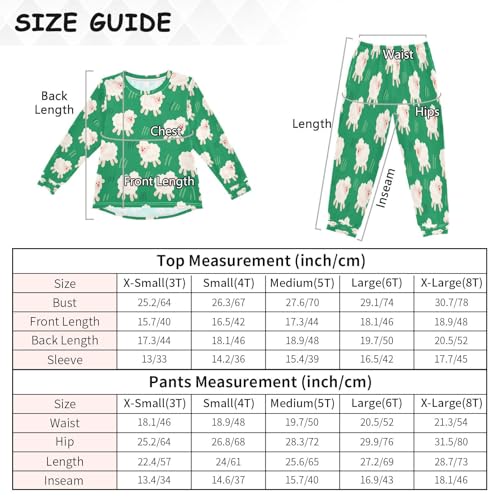 Little Sheep Green Soft Pajama Set for All Seasons,Breathable Pjs Long Sleeve Sleepwear,Comfy Loungewear 2 Piece Underwear Set 8T 3