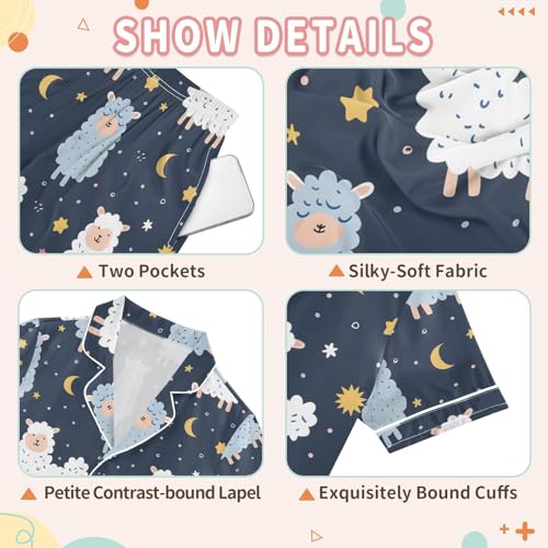 ALAZA Cute Alpaca Moon Star Pajamas Satin Pajama Set Short Sleeve Button Down Sleepwear 4