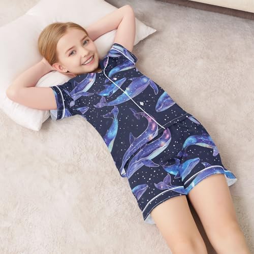 ALAZA Whale Space Starry Pajamas Satin Pajama Set Short Sleeve Button Down Sleepwear 3