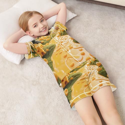 Satin Pajama Sets Short Sleeve Funny Cheese River Landscape Button Down Silky Nightwear 2 Piece PJS 5-14Y 2