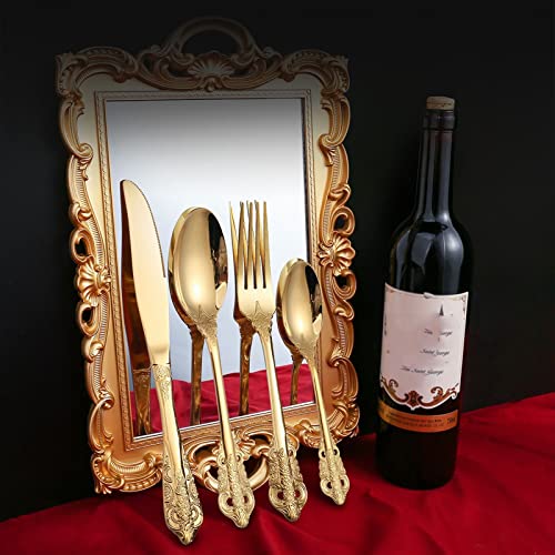 More information about Dinner Spoon 4 Pieces 410 Stainless Steel Spoon Western Food Tableware Set Steak Knife Fork Dessert Spoon Long-Handled Spoon (Color : 1) (Brass)