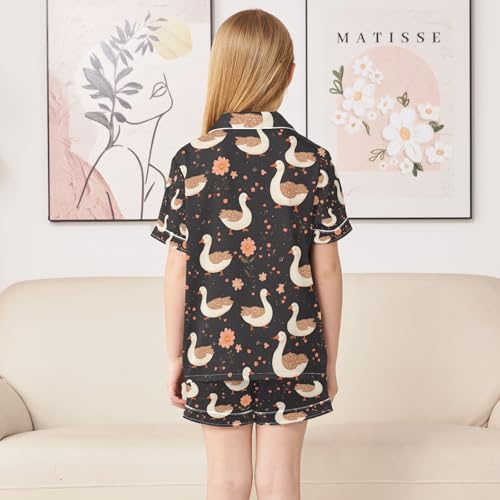 senya Geese Black Flower Satin Summer Pajama Sets Silk Short Sleeve Button Down Sleepwear 2