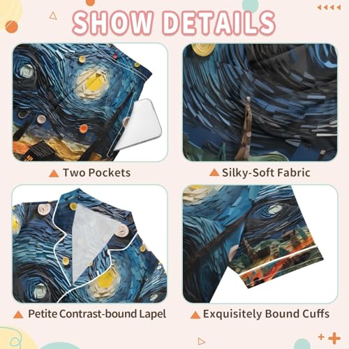 ALAZA Magic Starry Night Van Gogh House Satin Pajamas Set Short Sleeve Button Down Sleepwear Summer Pjs 2 Piece 6