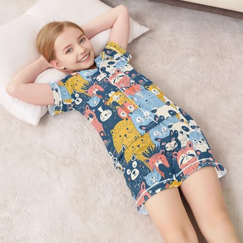More information about ALAZA Colored Animal Bear Satin Pajamas Set Short Sleeve Button Down Sleepwear Summer Pjs 2 Piece