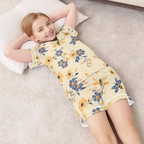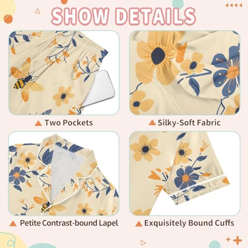 ALAZA Bee Yellow Flower Pajamas Satin Pajama Set Short Sleeve Button Down Sleepwear 1