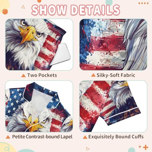 ALAZA Watercolor Bird American Flag Satin Pajamas Set Short Sleeve Button Down Sleepwear Summer Pjs 2 Piece 4