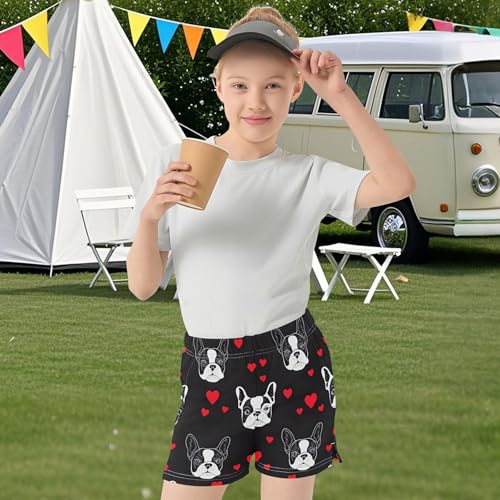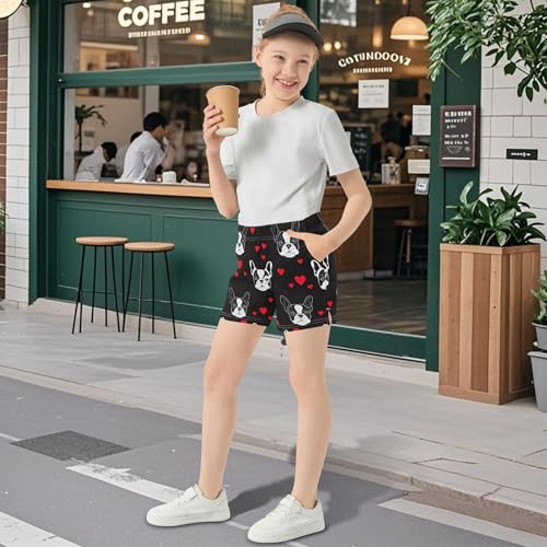 Girls Athletic Lounge Shorts Cute French Bulldog Hearts Print Comfy Casual Kids Summer Pajama Sleepwear, X-Small 4