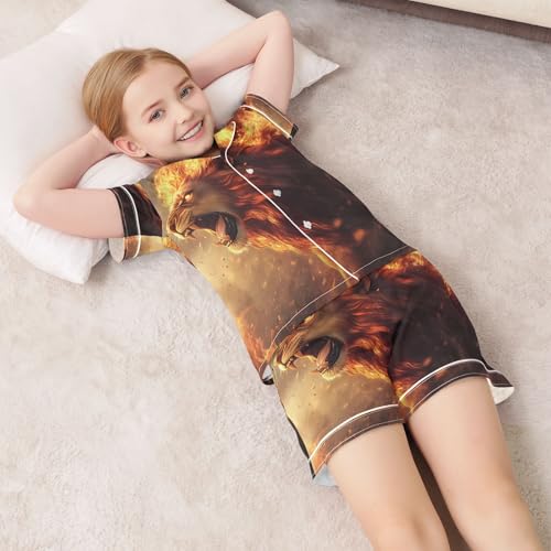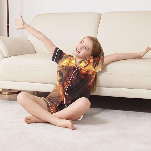 ALAZA Lion Flame Fire Animal Satin Pajamas Set Short Sleeve Button Down Sleepwear Summer Pjs 2 Piece 1