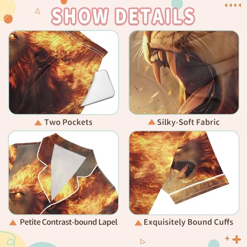 ALAZA Lion Flame Fire Animal Satin Pajamas Set Short Sleeve Button Down Sleepwear Summer Pjs 2 Piece 5