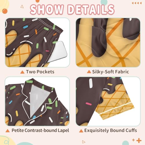 ALAZA Chocolate Ice Cream Stylish Satin Pajamas Set Short Sleeve Button Down Sleepwear Summer Pjs 2 Piece 1