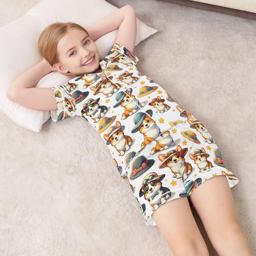 ALAZA Cute Dog in Hat Pajamas Satin Pajama Set Short Sleeve Button Down Sleepwear 7