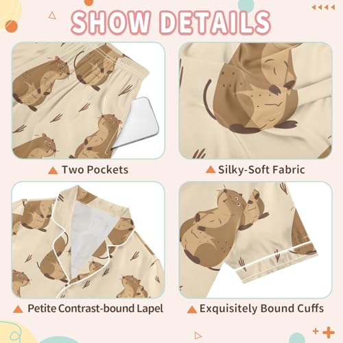 ALAZA Cute Capybara Funny Pajamas Satin Pajama Set Short Sleeve Button Down Sleepwear 6