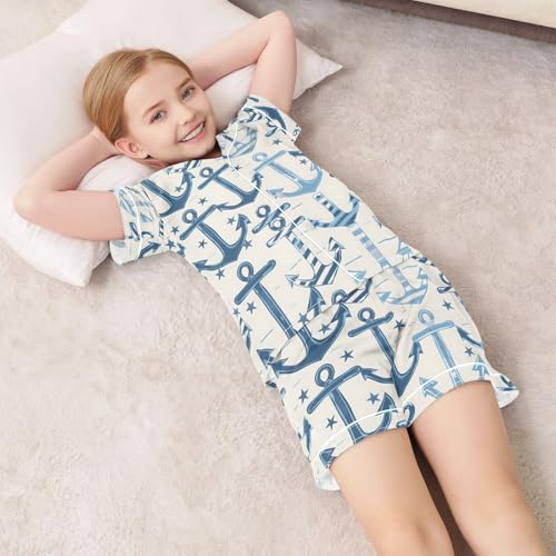 ALAZA Anchor Star Blue Pajamas Satin Pajama Set Short Sleeve Button Down Sleepwear 6