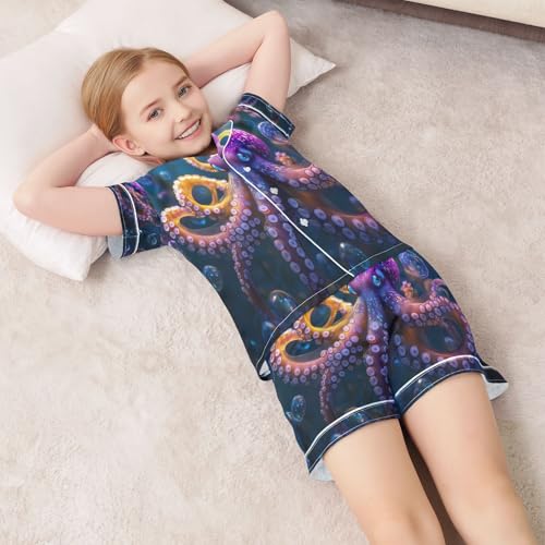 More information about ALAZA Octopus Bubble Ocean Sea Satin Pajamas Set Short Sleeve Button Down Sleepwear Summer Pjs 2 Piece