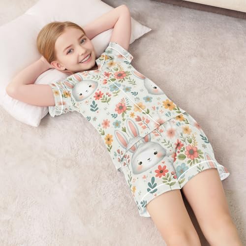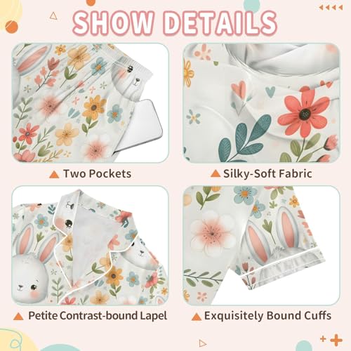ALAZA Cute Rabbit Flower Floral Pajamas Satin Pajama Set Short Sleeve Button Down Sleepwear 7
