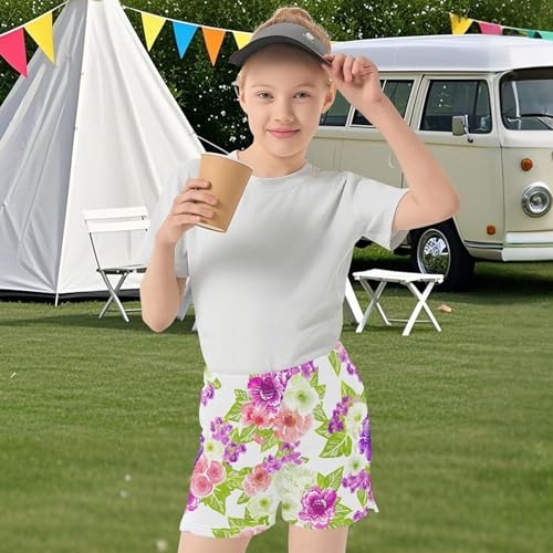 Girls Athletic Shorts Pink Purple Floral White Comfy Casual Youth Summer Pajama Sleep Shorts with Pockets, X-Small 1