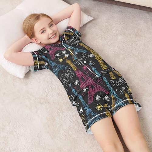 ALAZA New Year Paris Eiffel Tower Satin Pajamas Set Short Sleeve Button Down Sleepwear Summer Pjs 2 Piece 1