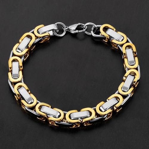 • PREMIUM STAINLESS STEEL – Crafted from hypoallergenic stainless steel, this two-tone bracelet is resistant to rust, stains, and corrosion, maintaining its sleek finish for years to come. The 8mm width provides a bold yet elegant statement, while the secure lobster clasp ensures a comfortable and reliable fit.