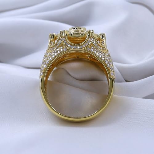 Men Wedding Engagement Circle Cluster Band Round Cut Lab Created Moissanite & Lab Grown Diamond King Crown Ring In 925 Sterling Silver 10K & 14K Solid Gold Jewelry Gift For Him 3 Cttw 6