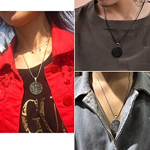Hipunk Men Islamic Pendant Necklace - Muslim Allah Necklace Allah Necklace Mens Muslim Islam Pendant 316L Stainless Steel Islamic Arabic Gift Black Gun/18K Gold Plated Islam Jewelry SP0049 4