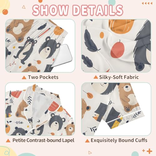 ALAZA Bear Funny Leaves Pajamas Satin Pajama Set Short Sleeve Button Down Sleepwear 3