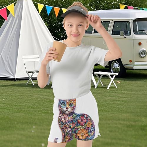 Girls Athletic Shorts Whimsical Pattern Cat Multicolor Cute Casual Summer Activewear Kids Sleep Shorts, X-Small 4