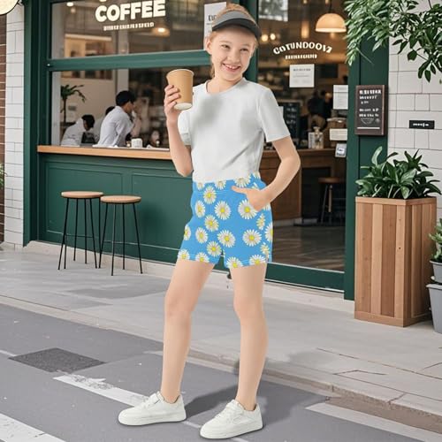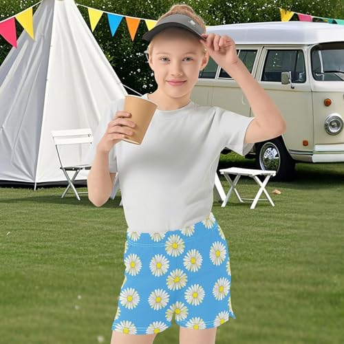 Girls Athletic Shorts Daisies White Pale Yellow Petals Print Comfy Casual Summer Youth Pajama Sleep Shorts, X-Small 5