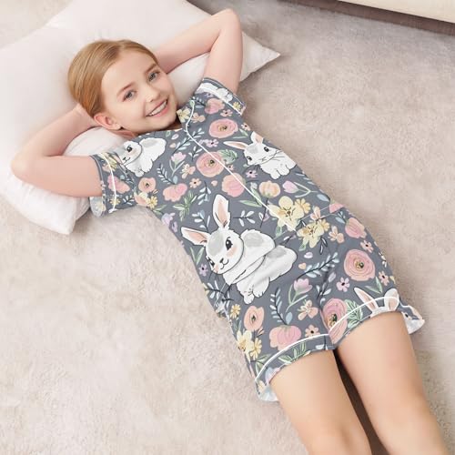 ALAZA Cute Rabbit Bunny Flower Easter Pajamas Satin Pajama Set Short Sleeve Button Down Sleepwear 6