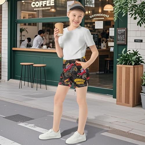Girls Shorts Red Monster Truck Tires Cartoon Print Athletic Kids Summer Comfy Youth Pajama Sleep Shorts, X-Small 5