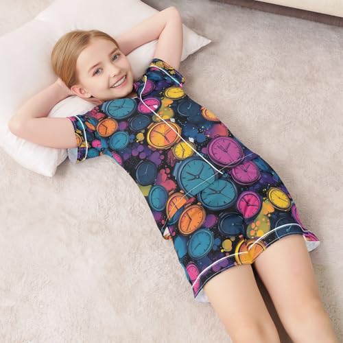 senya Colorful Alarm Clock Satin Summer Pajama Sets Silk Short Sleeve Button Down Sleepwear 3