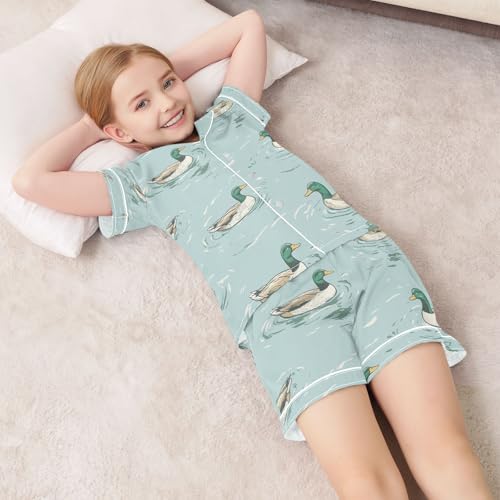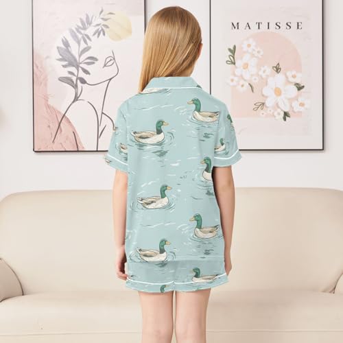 senya Mallard Duck Swimming P Satin Summer Pajama Sets Silk Short Sleeve Button Down Sleepwear 2