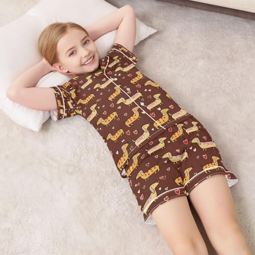 senya Cute Dachshund Heart Brown Satin Summer Pajama Sets Silk Short Sleeve Button Down Sleepwear 2