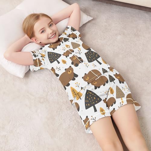 ALAZA Cute Bear Pine Tree Pajamas Satin Pajama Set Short Sleeve Button Down Sleepwear 3