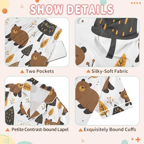 ALAZA Cute Bear Pine Tree Pajamas Satin Pajama Set Short Sleeve Button Down Sleepwear 6