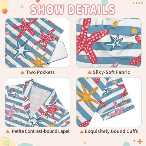 ALAZA Starfish Striped Pajamas Satin Pajama Set Short Sleeve Button Down Sleepwear 3